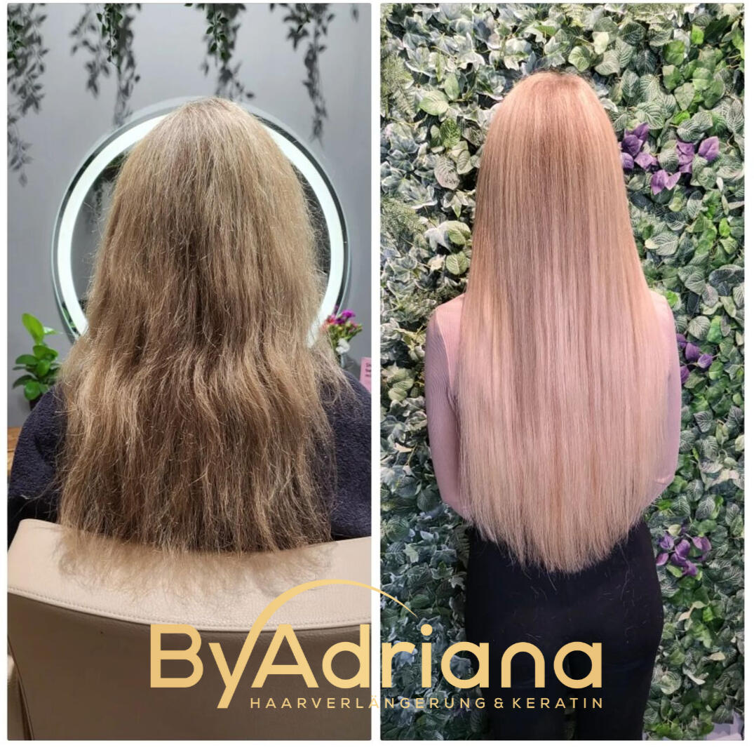 Bei By Adriana – Haarverlängerung & Keratin in Berlin bieten wir professionelle Haarverlängerungen und Keratinbehandlungen an. Unsere Spezialisierung liegt auf der brasilianischen Methode der Haarverlängerung, die ohne Hitze, Kleber oder Clips auskommt. Diese Technik ist besonders schonend für das Eigenhaar und sorgt für ein natürliches, voluminöses Ergebnis.Wir verwenden ausschließlich hochwertiges europäisches oder brasilianisches Echthaar, das individuell auf die Haarstruktur unserer Kundinnen abgestimmt wird. Unser Ziel ist es, jeder Kundin zu ihrem Traumhaar zu verhelfen – mit Präzision, Leidenschaft und einem Auge fürs Detail.